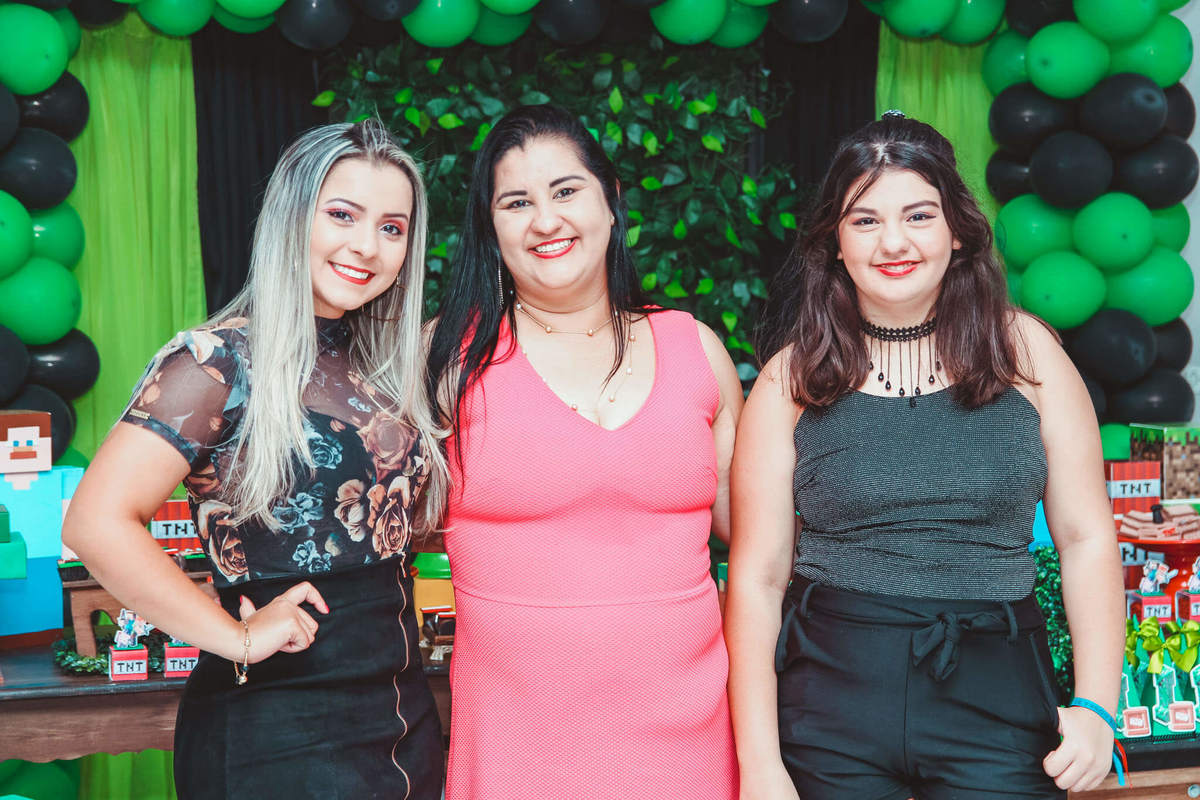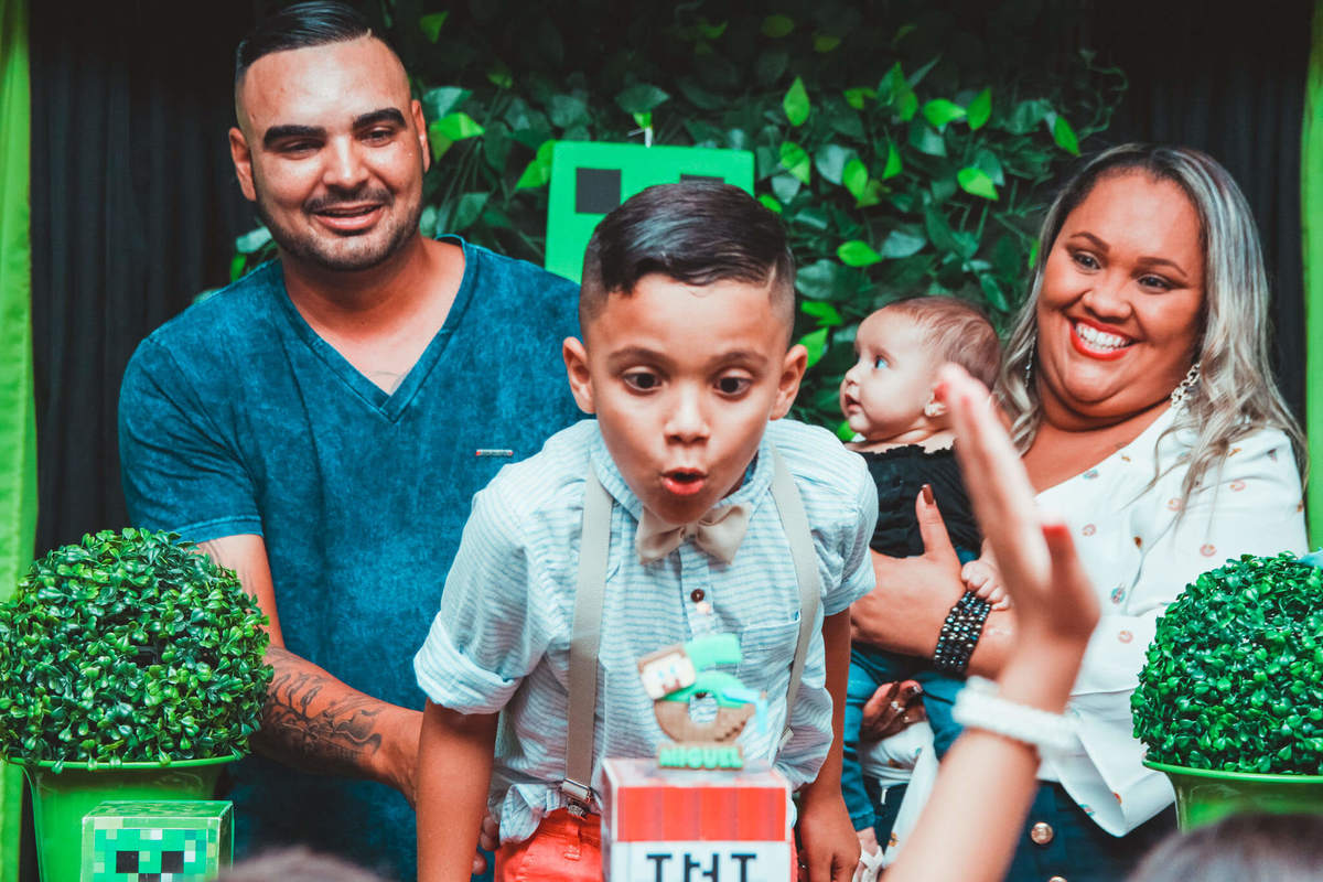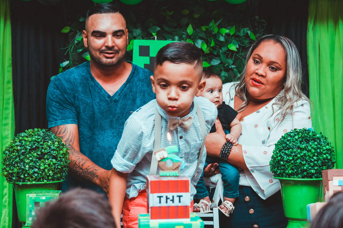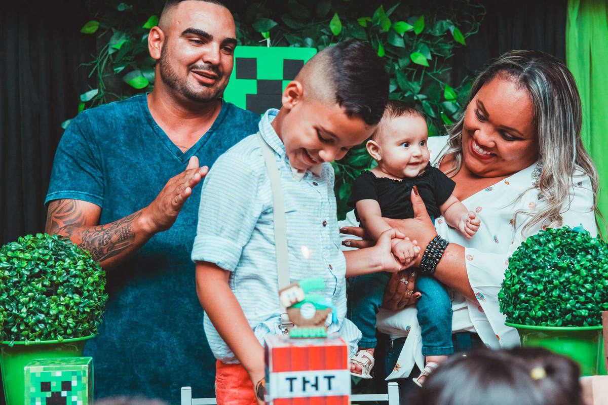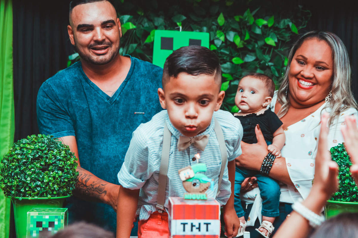 A decoração foi toda com o tema do MineCraft. tudo muito bem arrumado e pensado com carinho pelo pessoal do Colorê Buffet Infantil, em Americana / SP. O salão é lindo, muitos brinquedos paras as crianças e os instrutores são bem atenciosos.