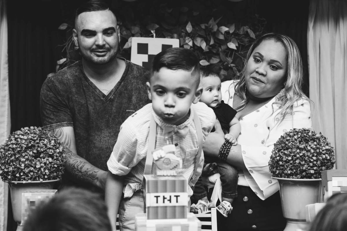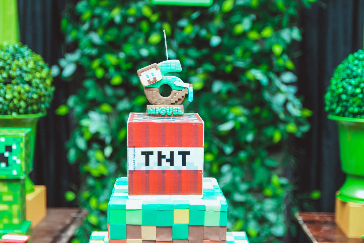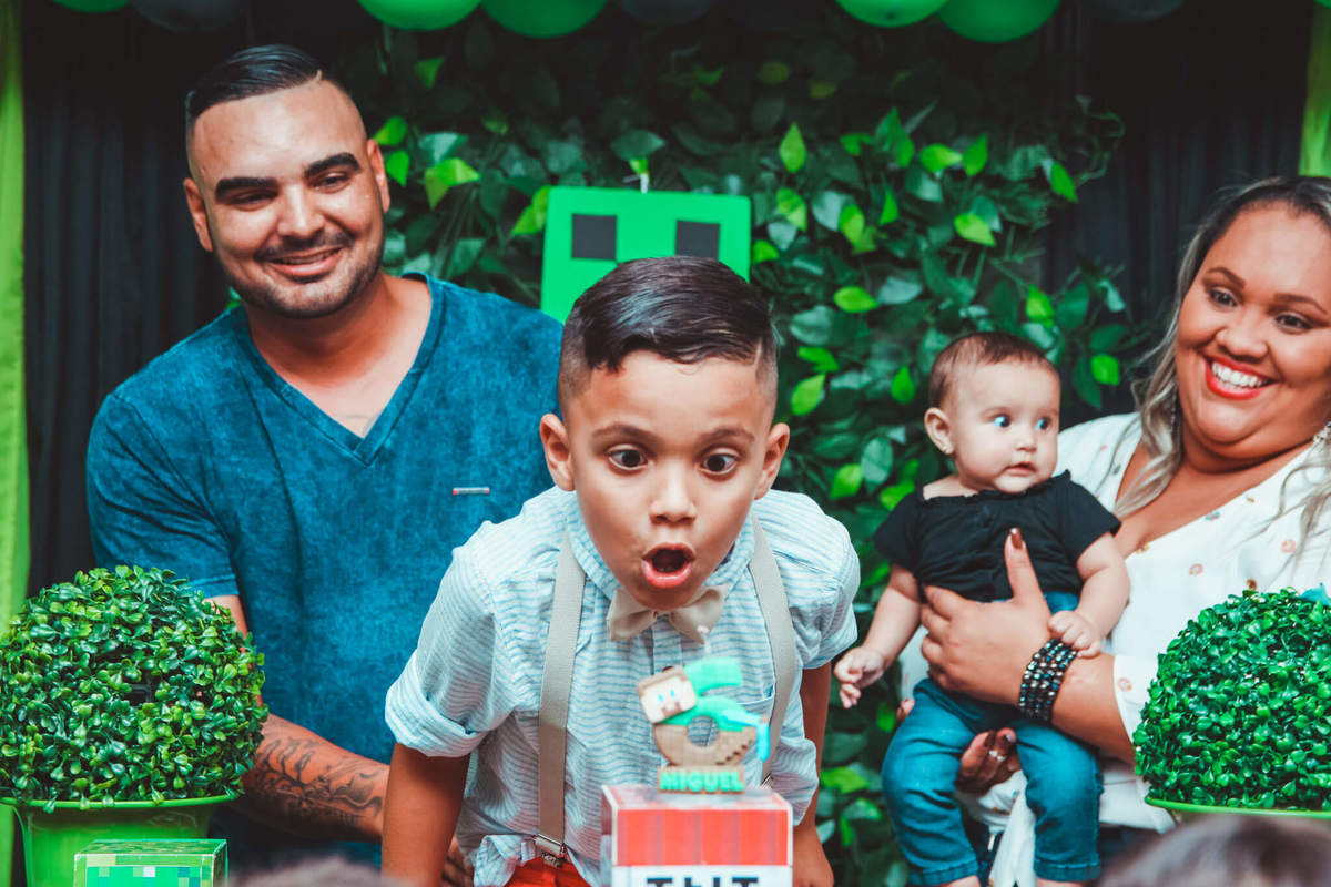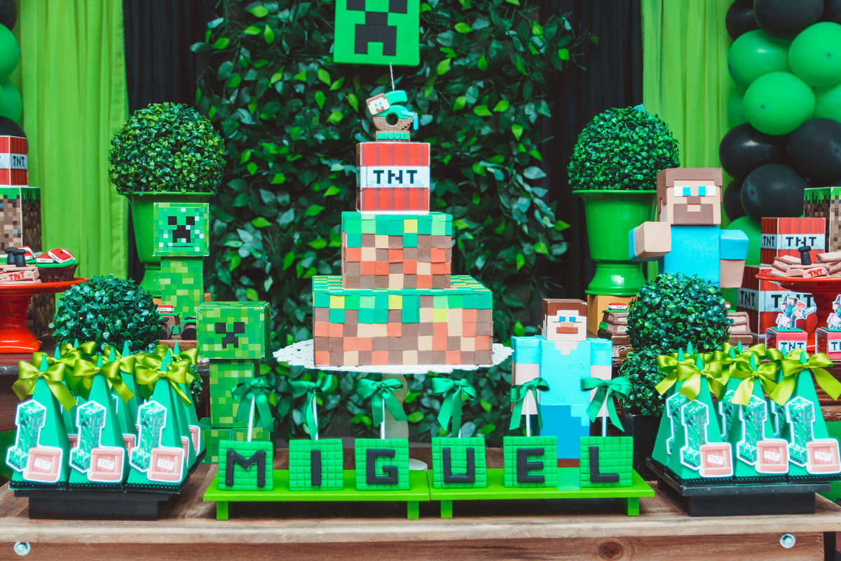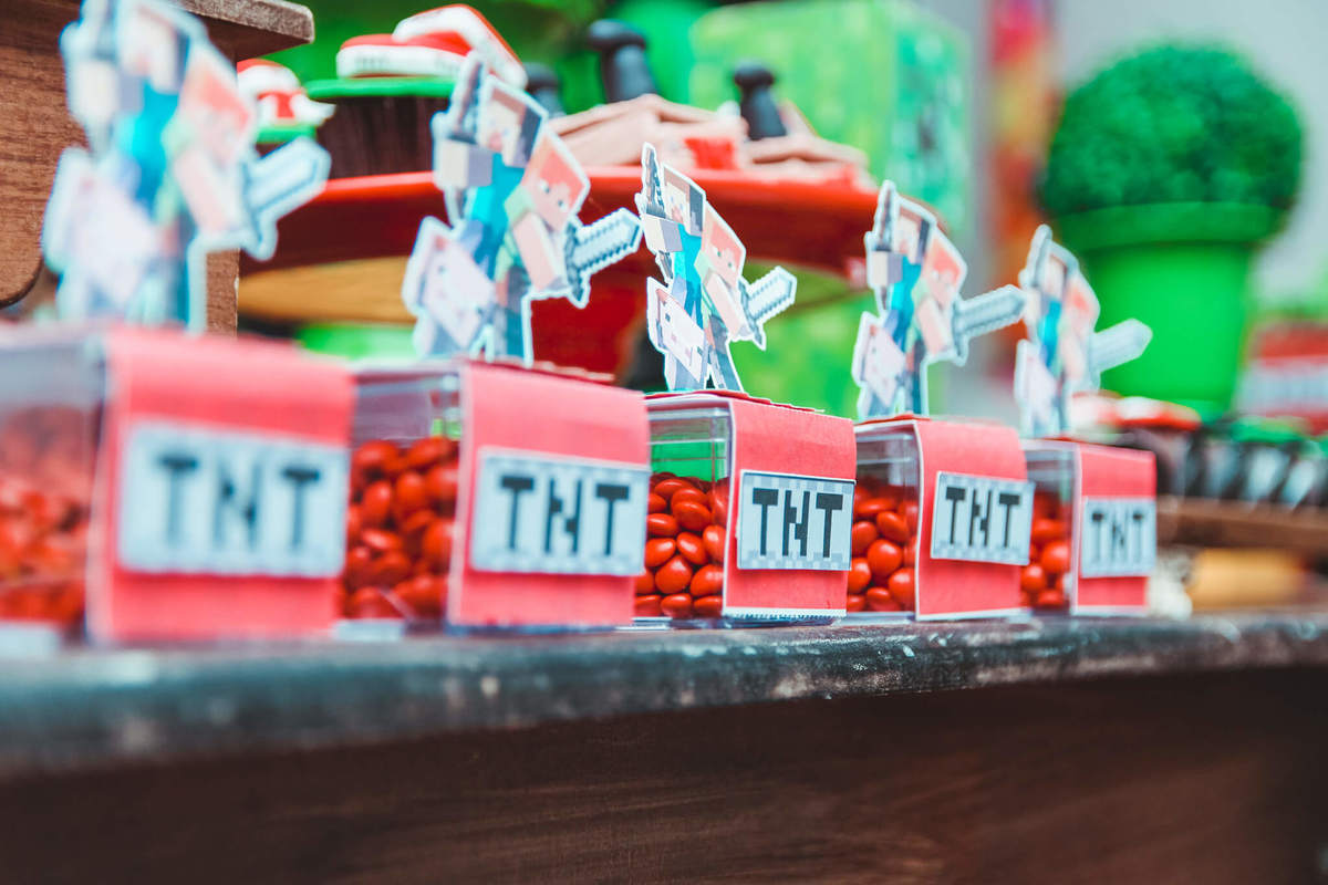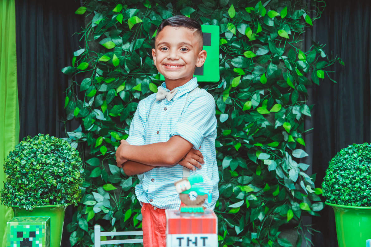 A decoração foi toda com o tema do MineCraft. tudo muito bem arrumado e pensado com carinho pelo pessoal do Colorê Buffet Infantil, em Americana / SP. O salão é lindo, muitos brinquedos paras as crianças e os instrutores são bem atenciosos.